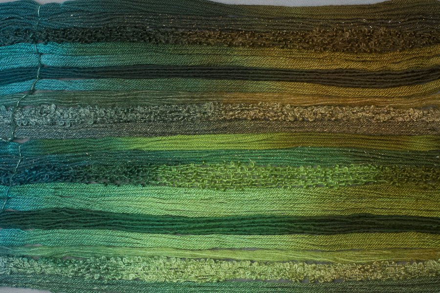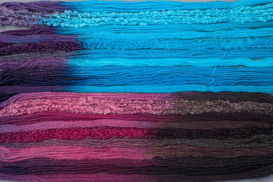 Cat Mountain Fiber Arts Fusion yarn couples multiple textures with luscious hand dyed colors!