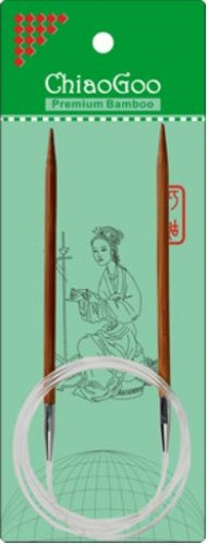 These 40" (100 cm) fixed Bamboo Circulars are made of Moso bamboo which is the largest and stongest bamboo out of over 1,000 different species. Sizes US0 (2 mm) through US2.5 (3 mm) have the same type of memory-free cable as our RED circulars and TWIST cables! Sizes US3 (3.25 mm) and larger have a nickel-plated, copper join that is glued and crimped to guarantee no seperation. The joins are fantastic, the nylon cable is pliable and the tips swivel freely! Needle size is permanently laser imprinted on each circular. Available in patina color only.