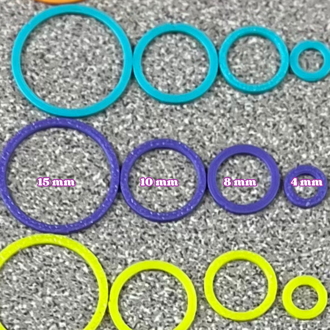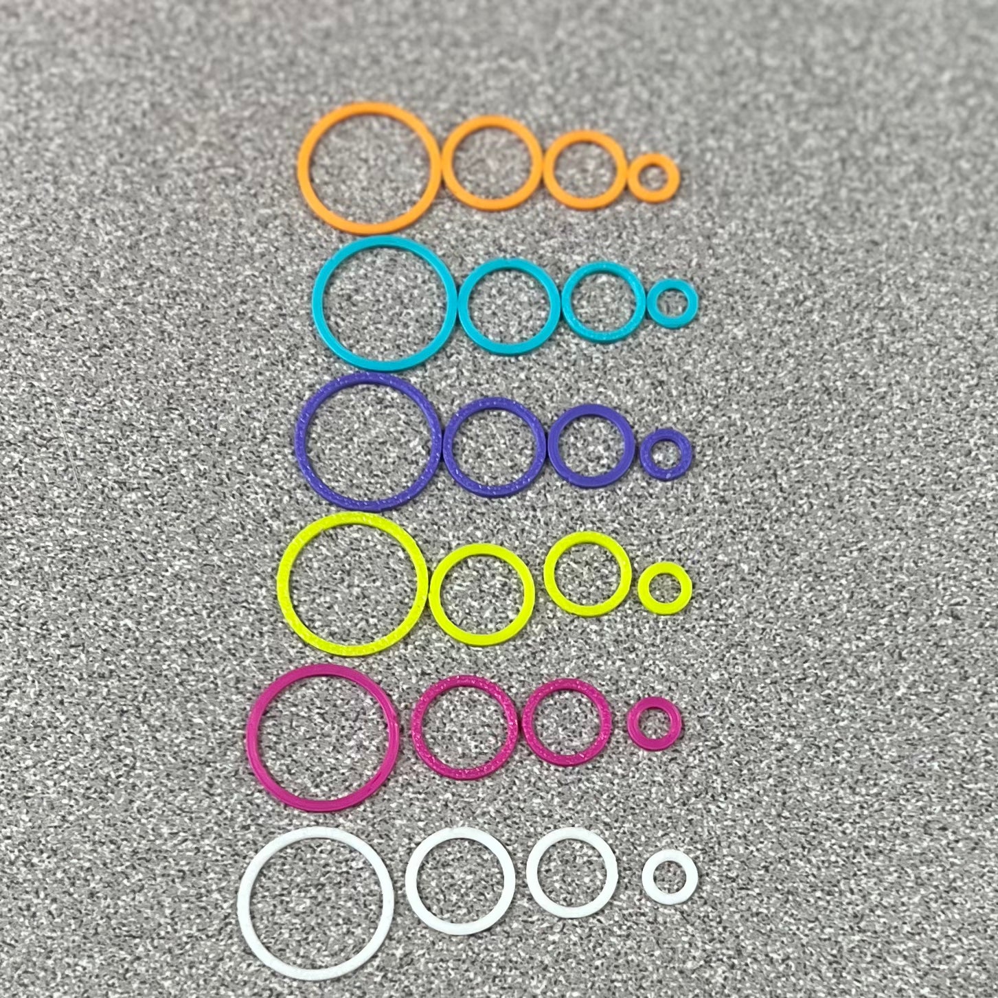 These low profile Circle Stitch Markers are perfect for your next project. Simple, light weight, in several colors so you can mark your stitches with ease. we find it helpful to mark you pattern with a coordinating highlighter for easy recognition at a glance. Each set of 96 contains 4 each of 6 colors in 15mm, 10 mm, 8mm, & 4mm