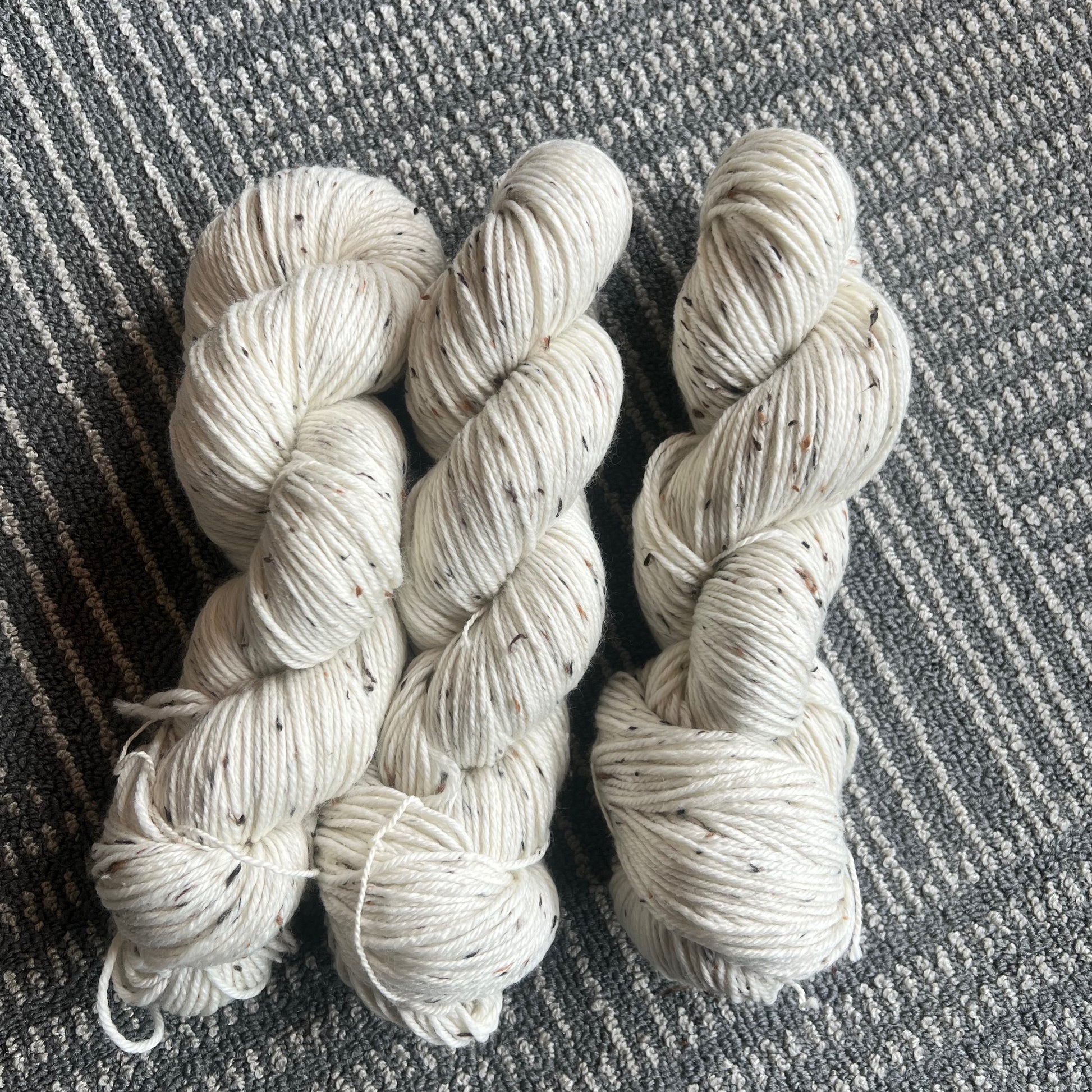 A twist on our most popular merino/nylon yarn blends. Playful black, caramel and cream speckles of viscose neps have been spun together to create a textured, tweed-inspired yarn. When used in a project, the yarn gives a rustic vibe thanks to the speckles of neutral colors from the quirky neps. Great for sweaters, scarves, shawls, and even durable pieces like socks and gloves.