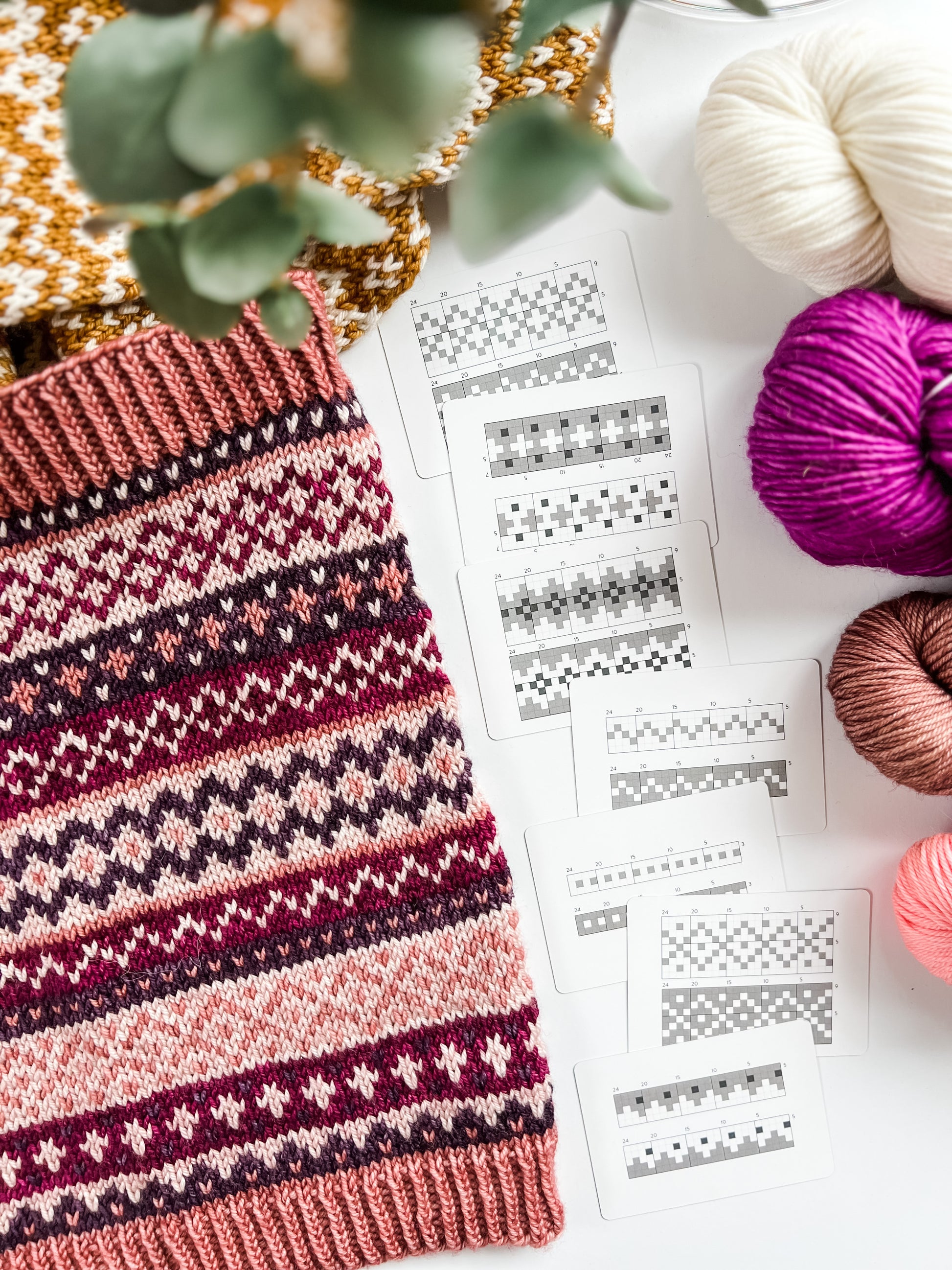 The ultimate way to inspire creative colorwork! Use these flexible mix-and-match chart cards to visually re-arrange and design the perfect colorwork pattern from start to finish.