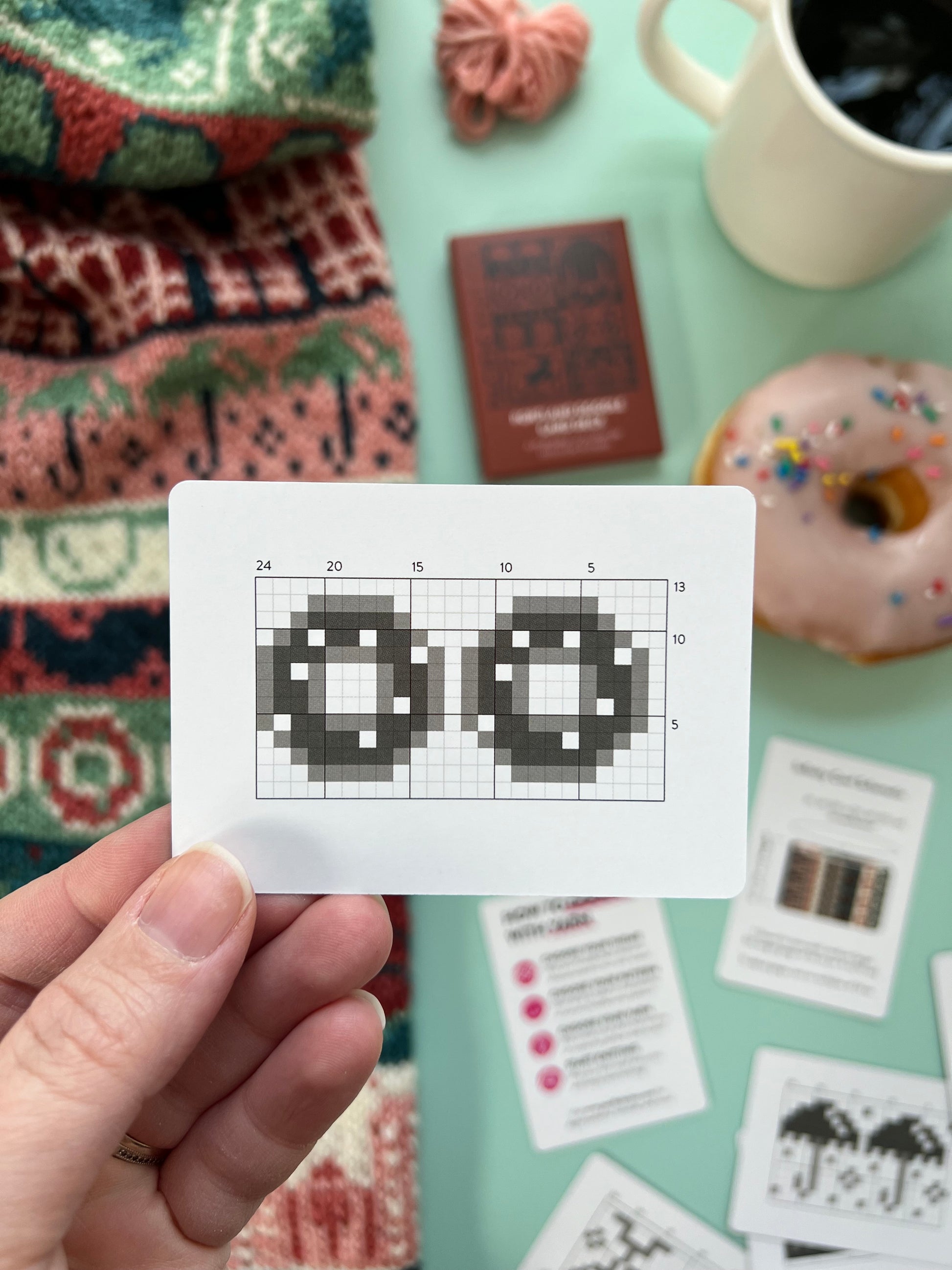 The ultimate way to inspire creative colorwork! Use these flexible mix-and-match chart cards to visually re-arrange and design the perfect colorwork pattern from start to finish.