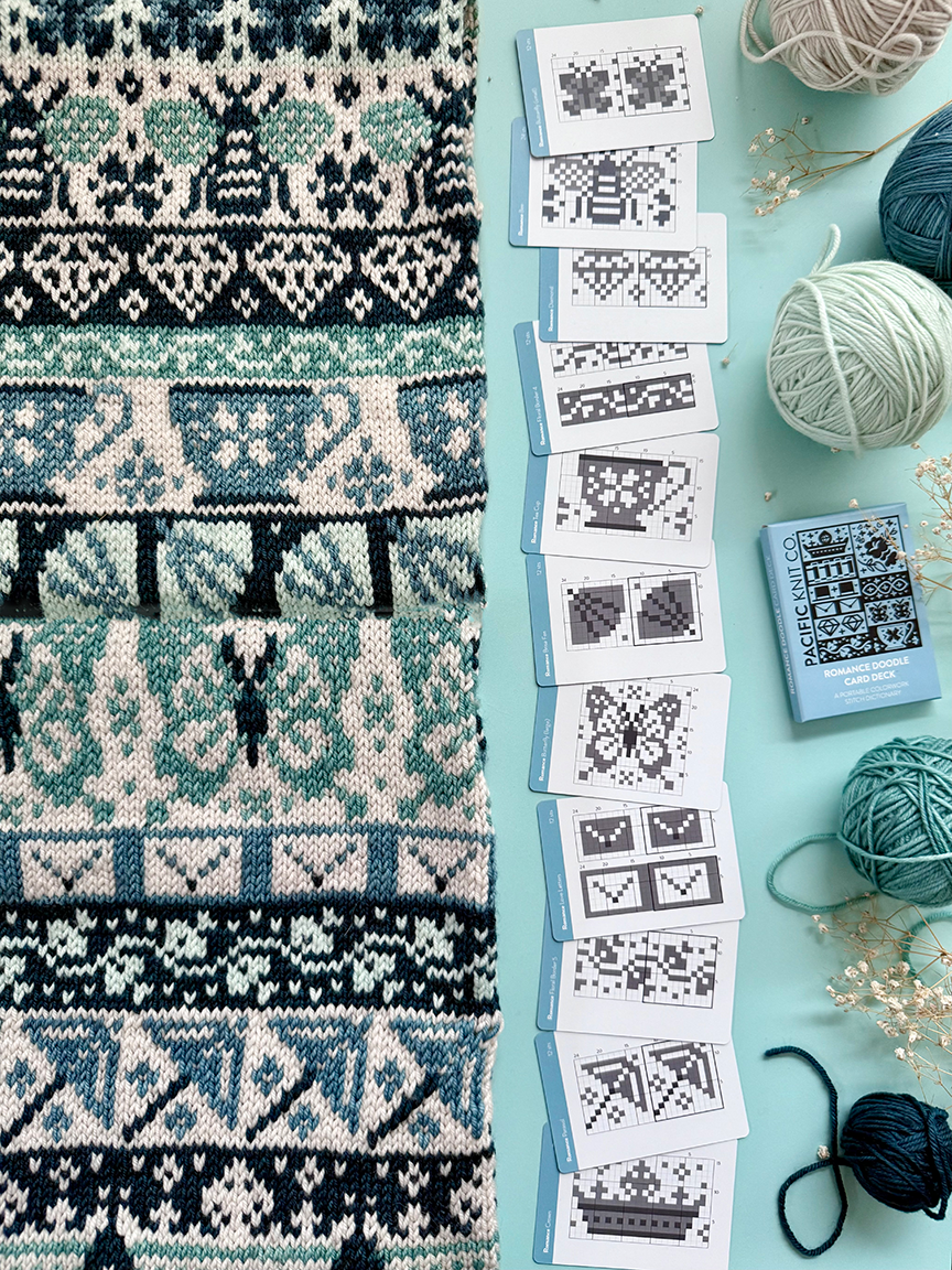 The ultimate way to inspire creative colorwork! Use these flexible mix-and-match chart cards to visually re-arrange and design the perfect colorwork pattern from start to finish.