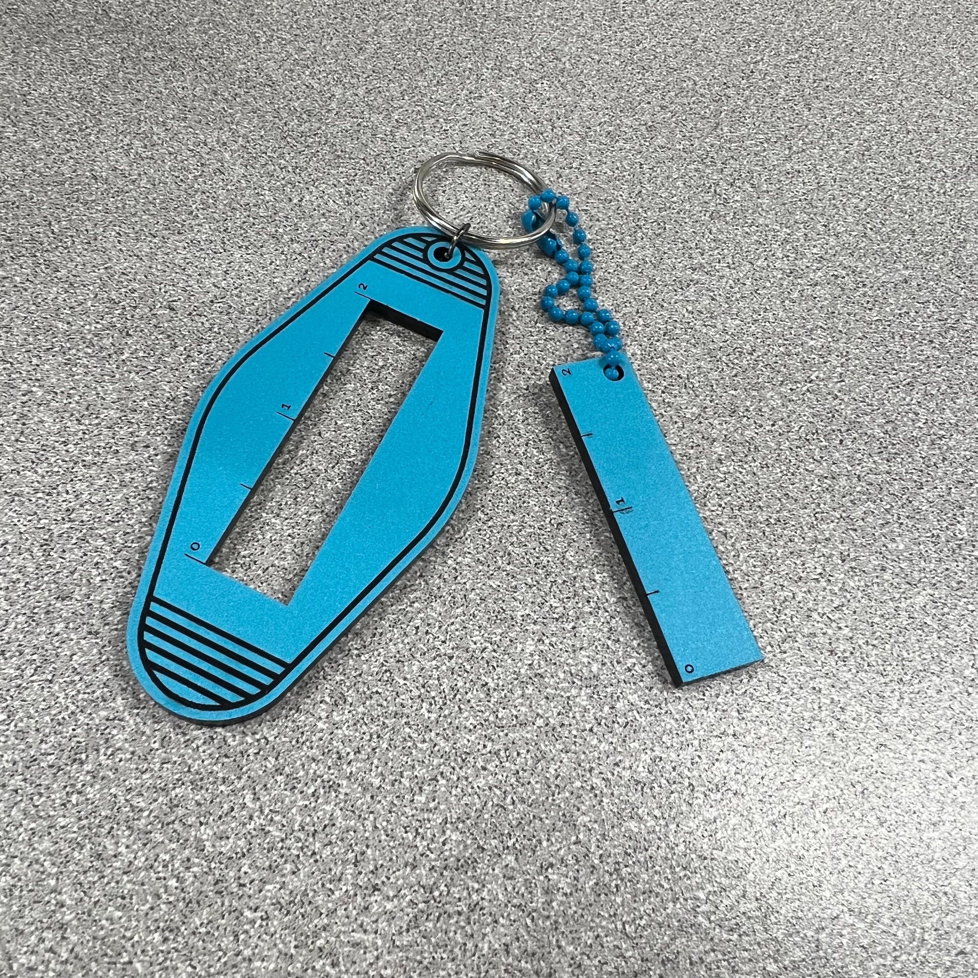 A Gauge Ruler Keychain is handy tool to have in your project bag. For on the go gauge measuring this 2 " keychain is super handy to have in your bag. So snag one of these keychain style gauge rulers and attach it to your project bag for speedy access when you need measure your gauge or if you've finally reached that 2" ribbing on your sweater.