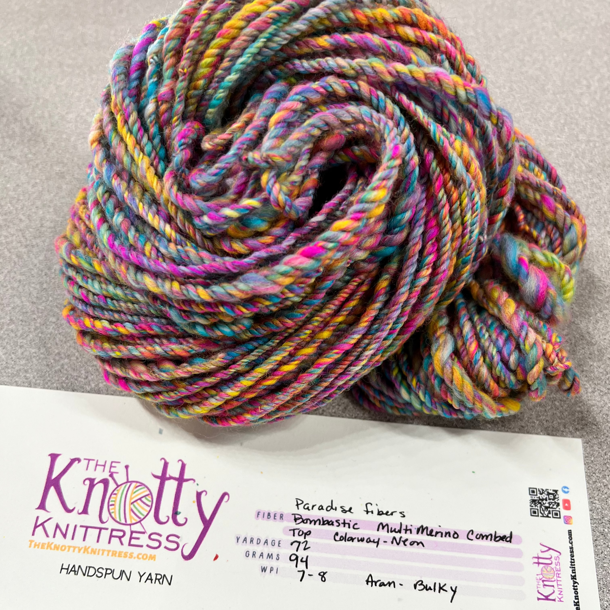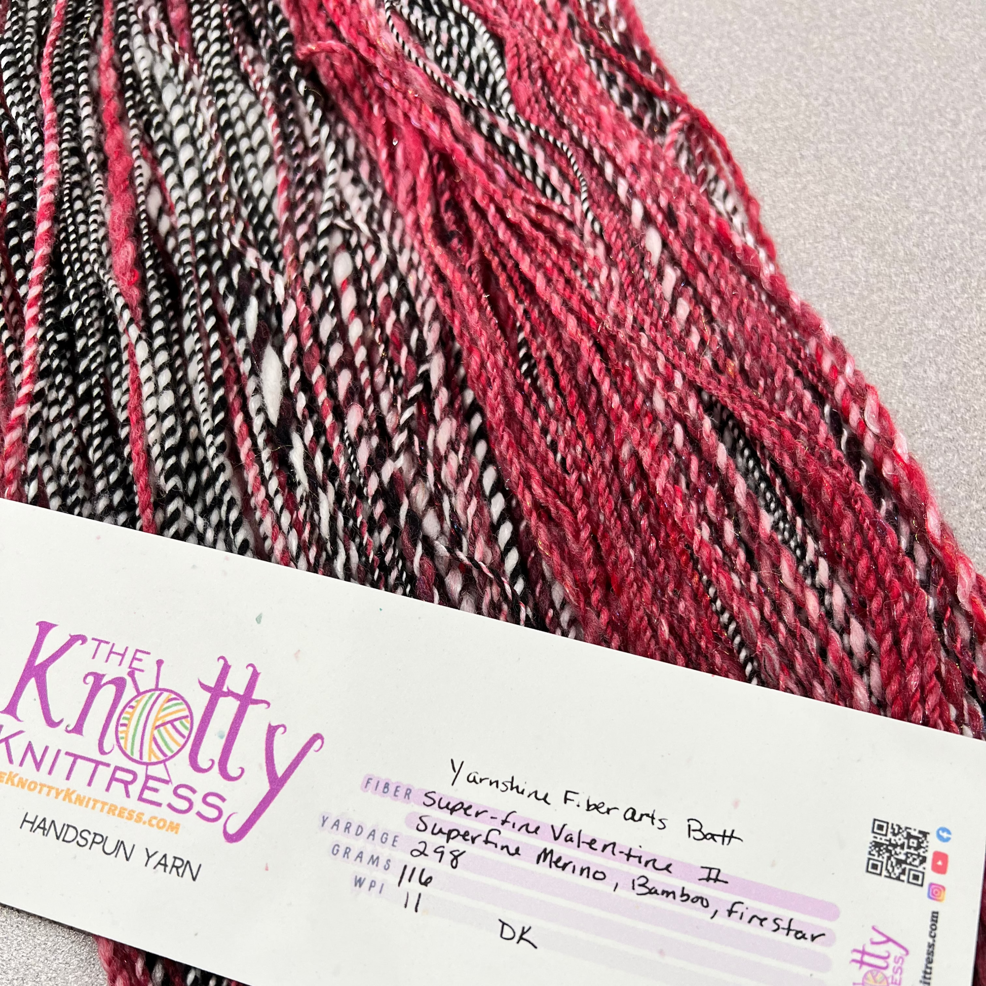 Experience the luxurious world of handspun yarn with The Knotty Knittress. Our selection features a diverse range of fibers and weights, providing endless creative possibilities. Explore further in our detailed photo descriptions.