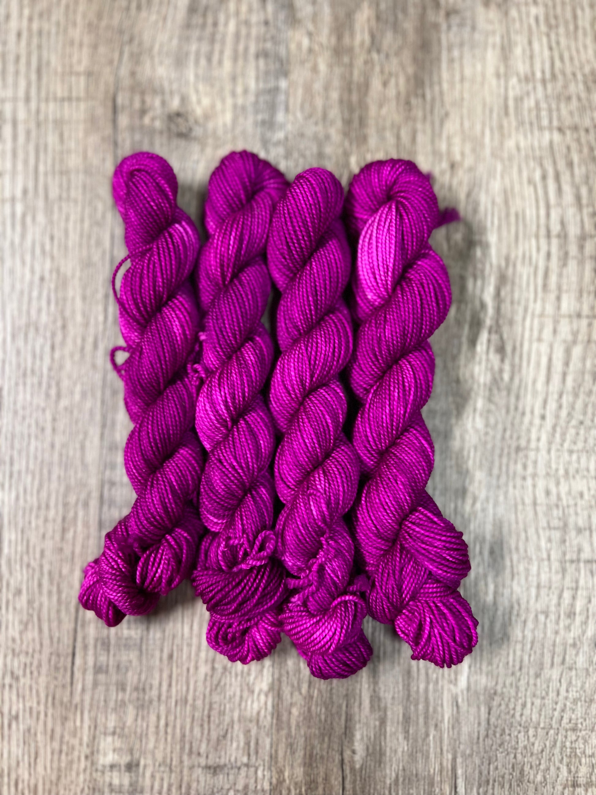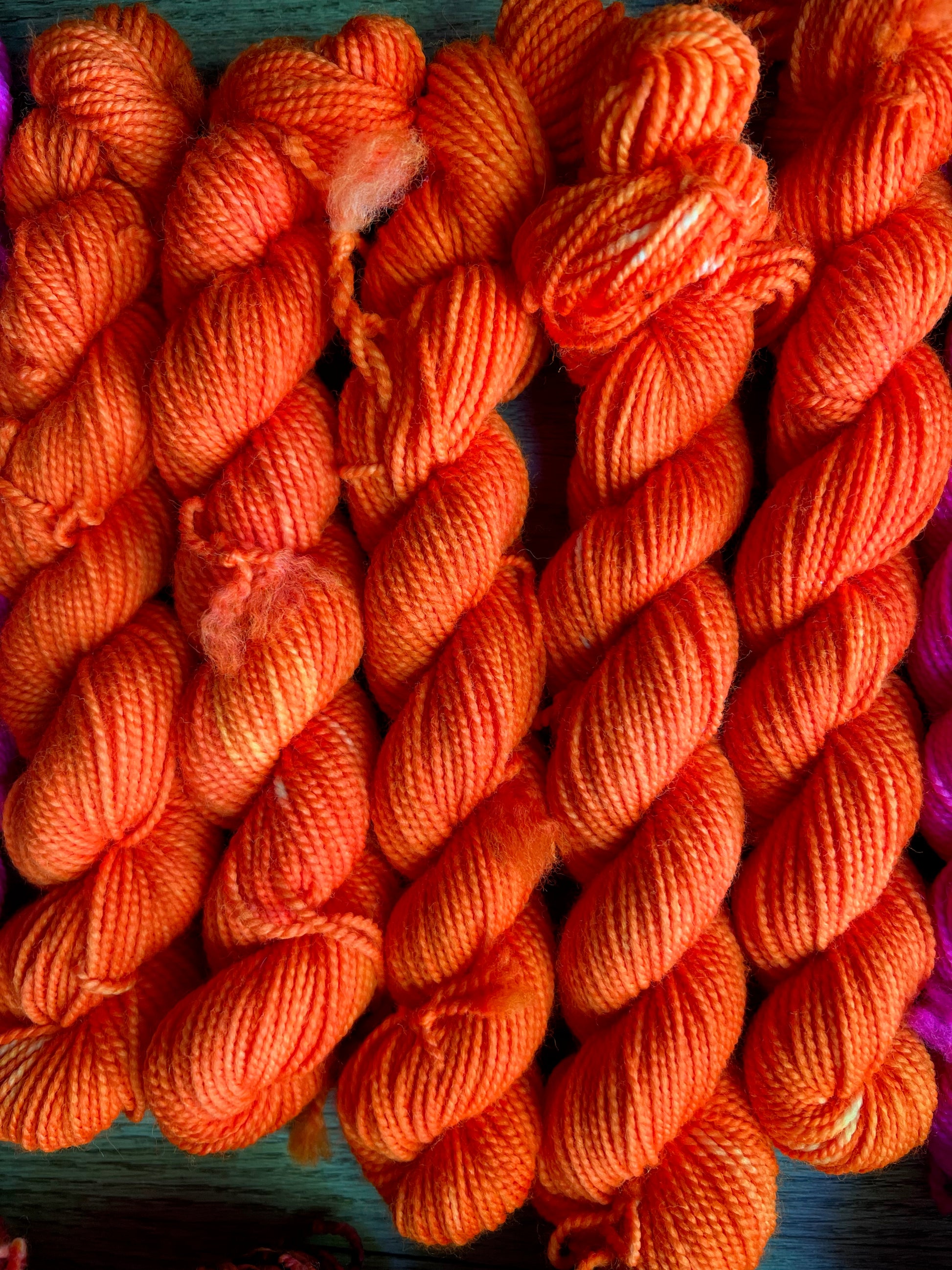 Two plies are twisted tightly together to produce a very soft and springy yarn. This makes the yarn slightly bumpy which helps the strands of yarn hold together against each other making it great for colorwork and lace work.