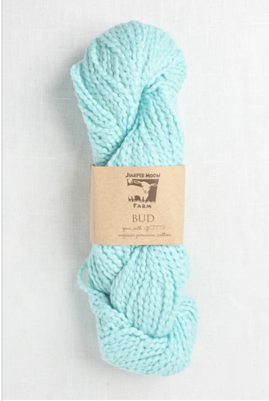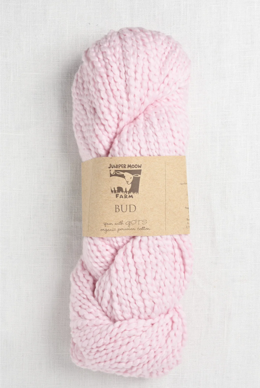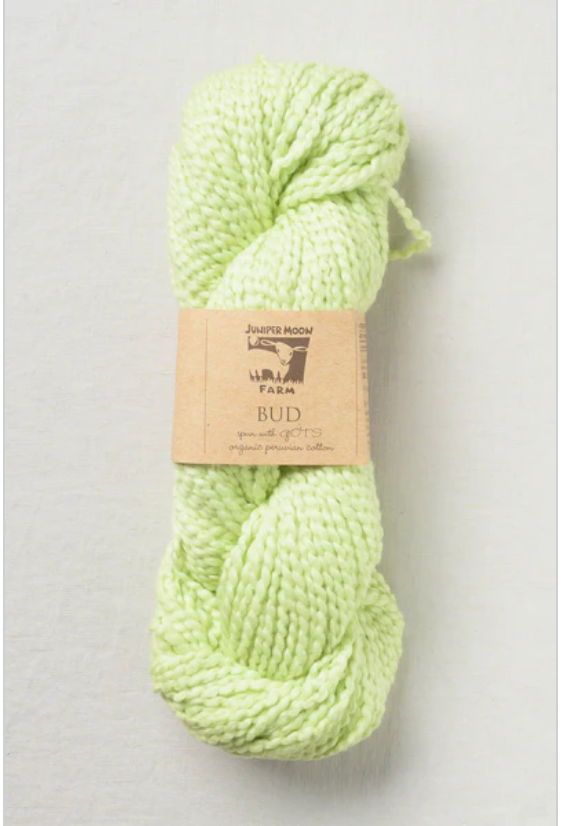 Juniper Moon Farm Bud is a Bulky luxurious yarn crafted for comfort and conscience. Made from 100% GOTS certified organic cotton, this chunky delight brings a touch of nature's finest to your crafting projects. Each 100 gram skein boasts 109 yards of plush perfection, spun around the finest organic Peruvian cotton for unparalleled softness and durability. The unique core-spun construction lends a delightful nubby texture, enhancing breathability and adding an extra dimension of interest to your finished fabric. Dive into your next project with Juniper Moon Farm Bulky and experience the beauty of sustainable luxury at your fingertips.