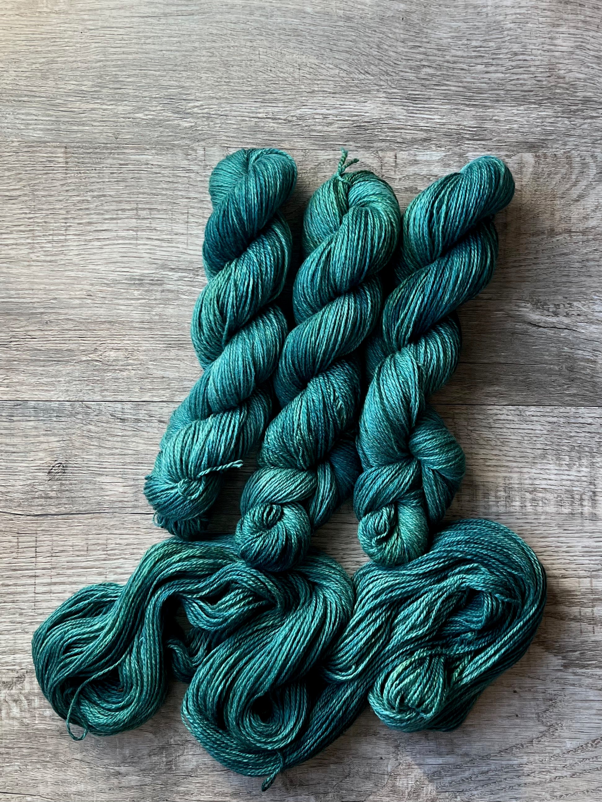 This Sport Weight is a Lofty 2 ply. Made from Optim Ultrafine Merino roving. Strong and Lustrous! This newly developed fiber is merino wool that has been stretched in a special process that preserves the luster and strength. Resulting in an ultra-fine merino wool that is softer and lighter than most cashmere. Treat yourself to this ultra luxurious yarn. Having a silky sheen and a drape perfect for shawl knitting and squishy sweaters. Yardage and grams listed are approximate as it was milled in a non commercial mill.