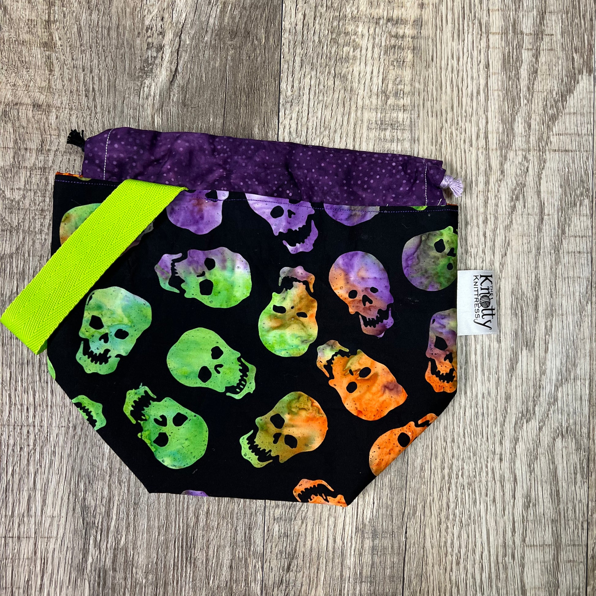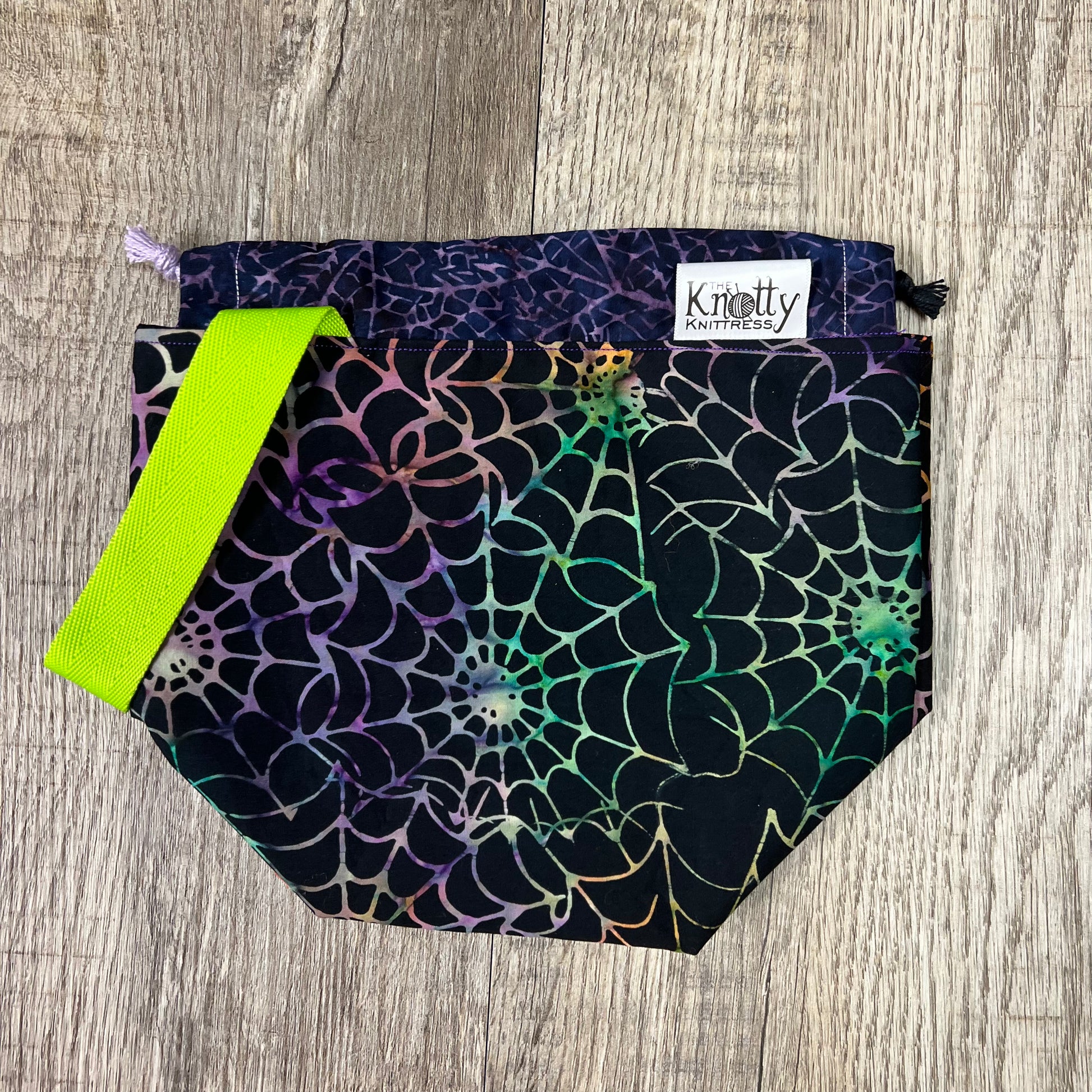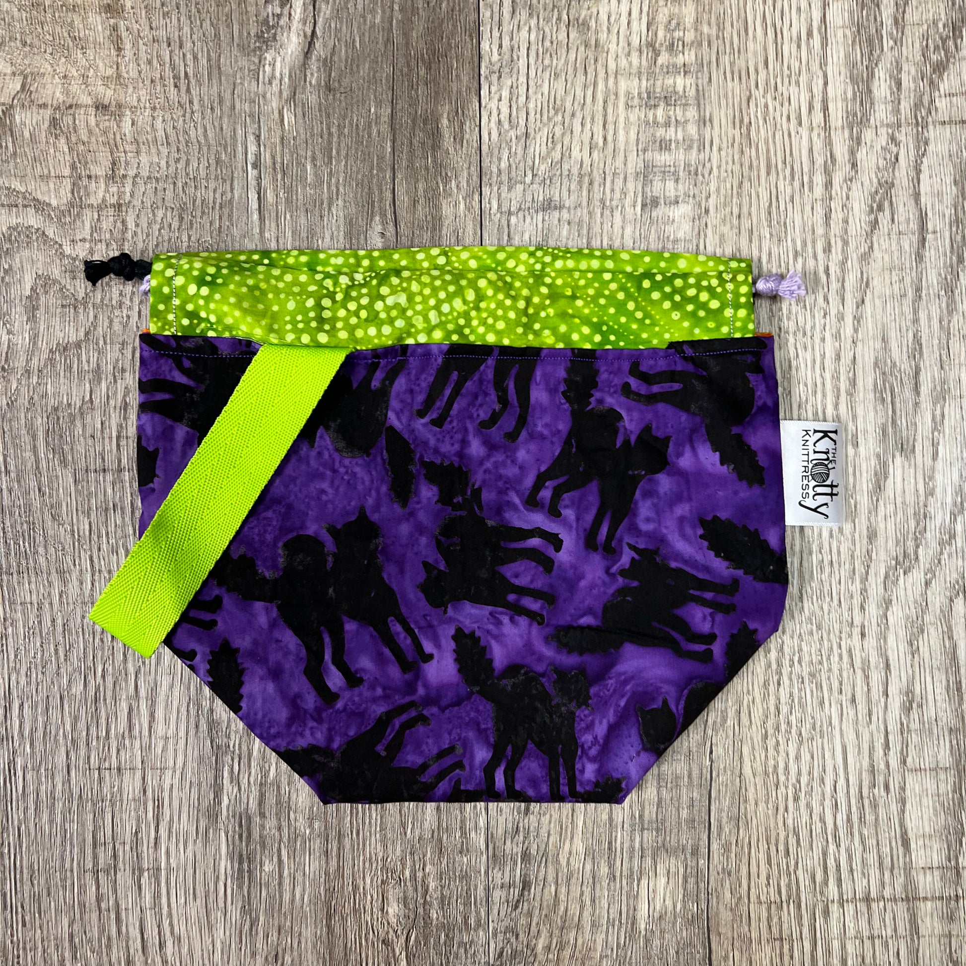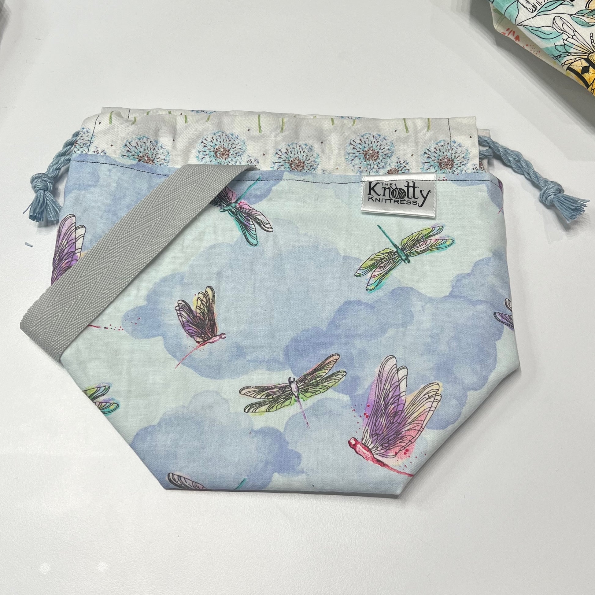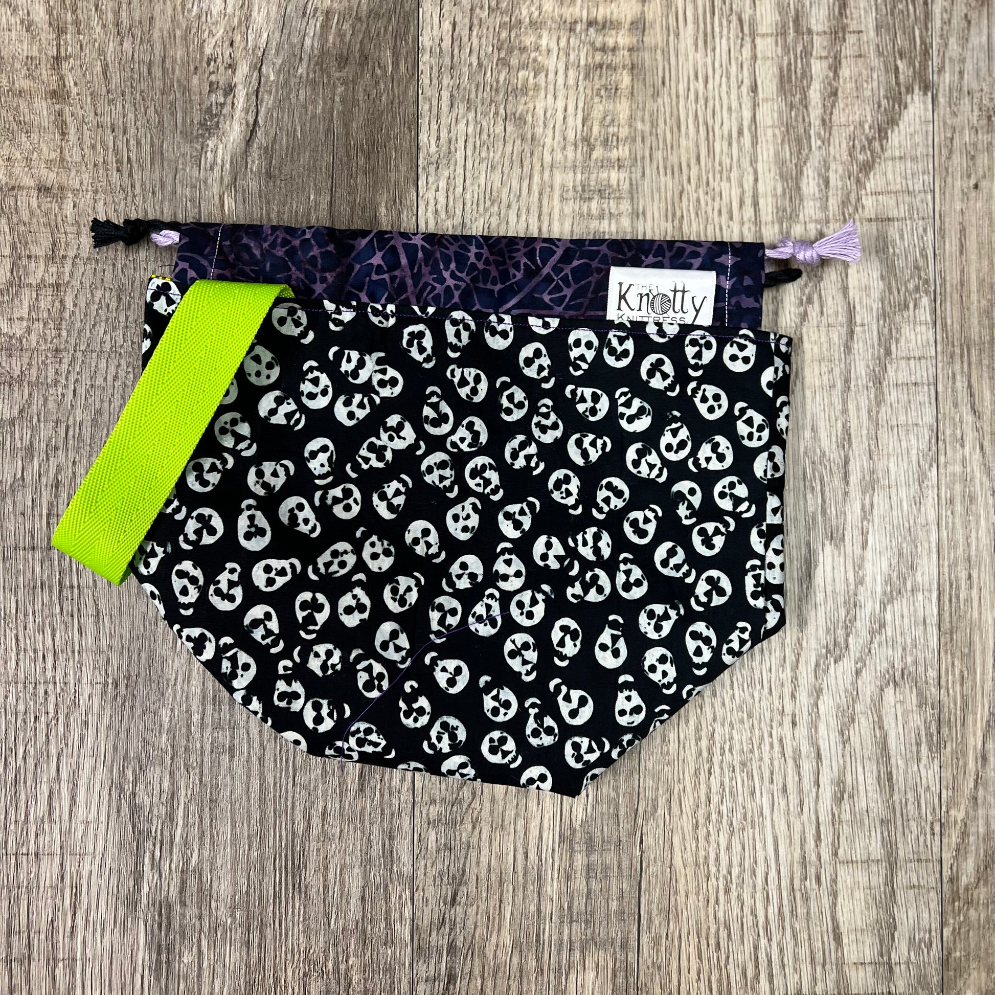 This 4 in. x 5 in. boxed bottom project bag, lovingly handcrafted by The Knotty Knittress herself, is perfect for your next one or two skein project. Lightly interfaced for stability, this bag can stand on its own and features a convenient drawstring top and handle for on-the-go crafting.