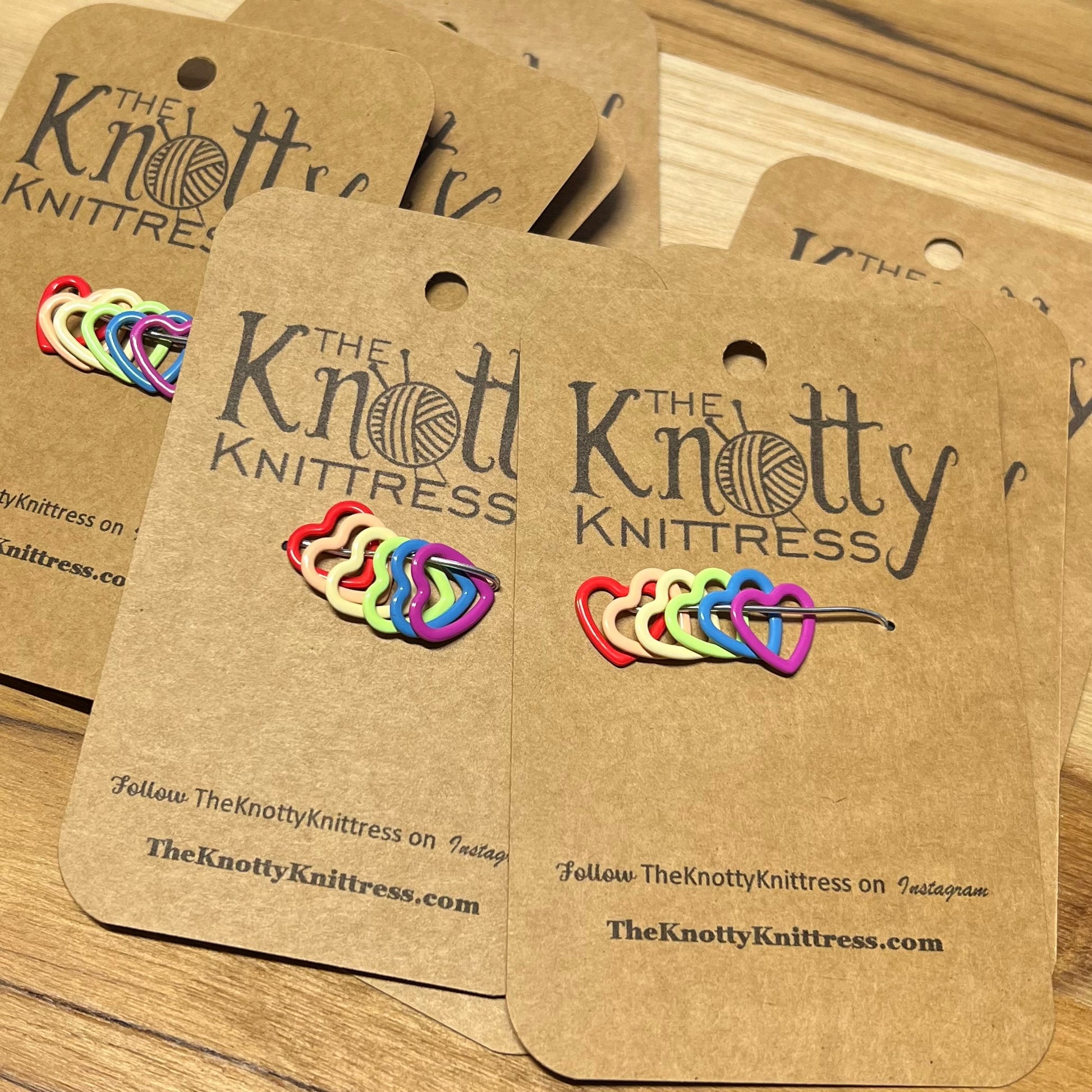A Stitch Marker is a knitting tool used to identify an important place in your knitting. Whether it is the beginning of the round (BOR) , an increase like make 1 left (M1L) or make on right (M1R), or simply to mark a pattern repeat stitch markers come in handy.