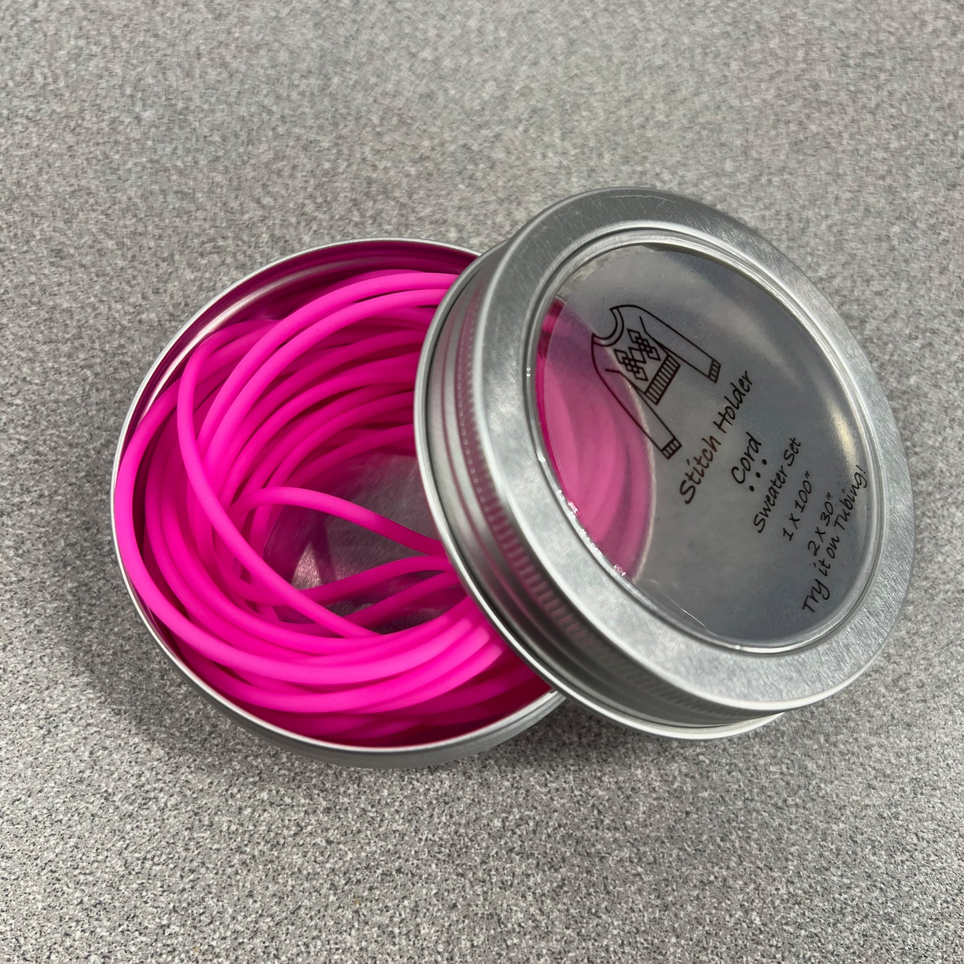 The end of the cord squishes firmly over most size needles, from US 0 (2mm) to US 15* (10mm). After it is attached to your needle tip, gently slide stitches on to the Stitch Holder Cord so you can try your garment on. When you are done, push all of the stitches back onto the needle and pull off the tubing. Also great for trying on smaller accessory items like hats, gloves/mittens, socks, etc.