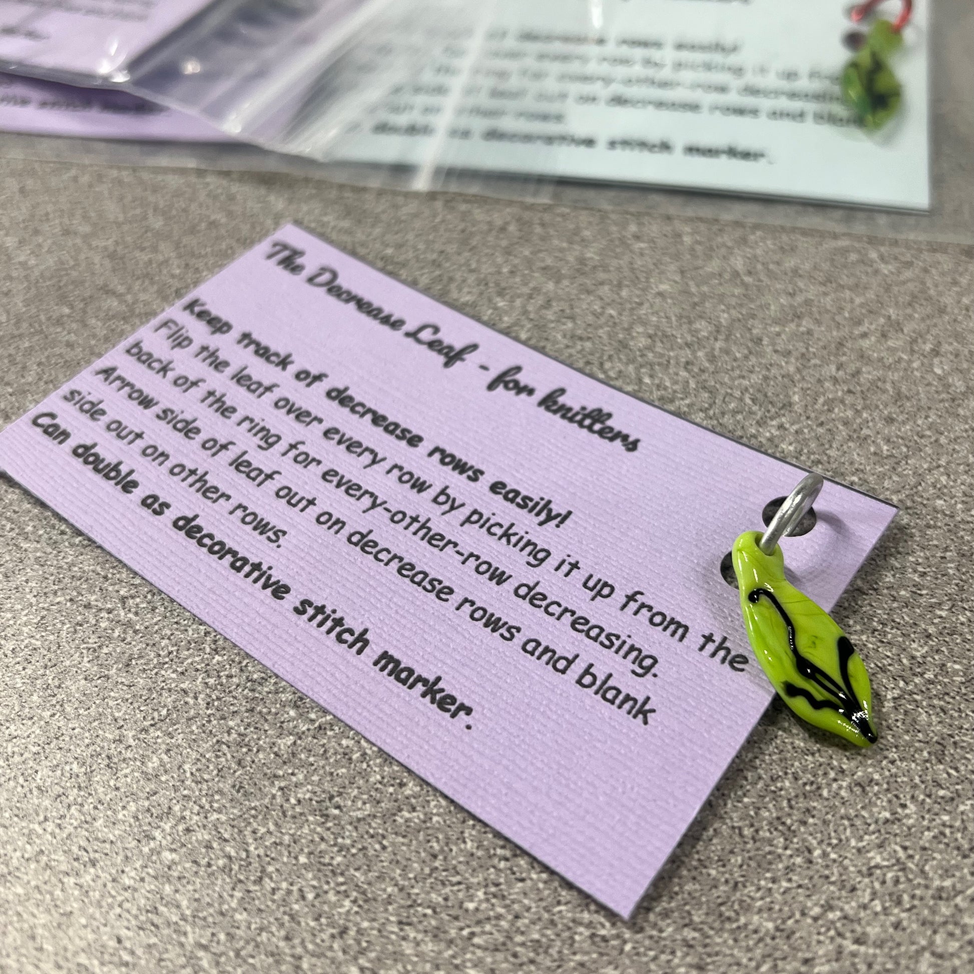The Decrease Leaf - for Knitters by Local Glass Artist Sue each one is hand made so they are unique and coloring and design will vary.