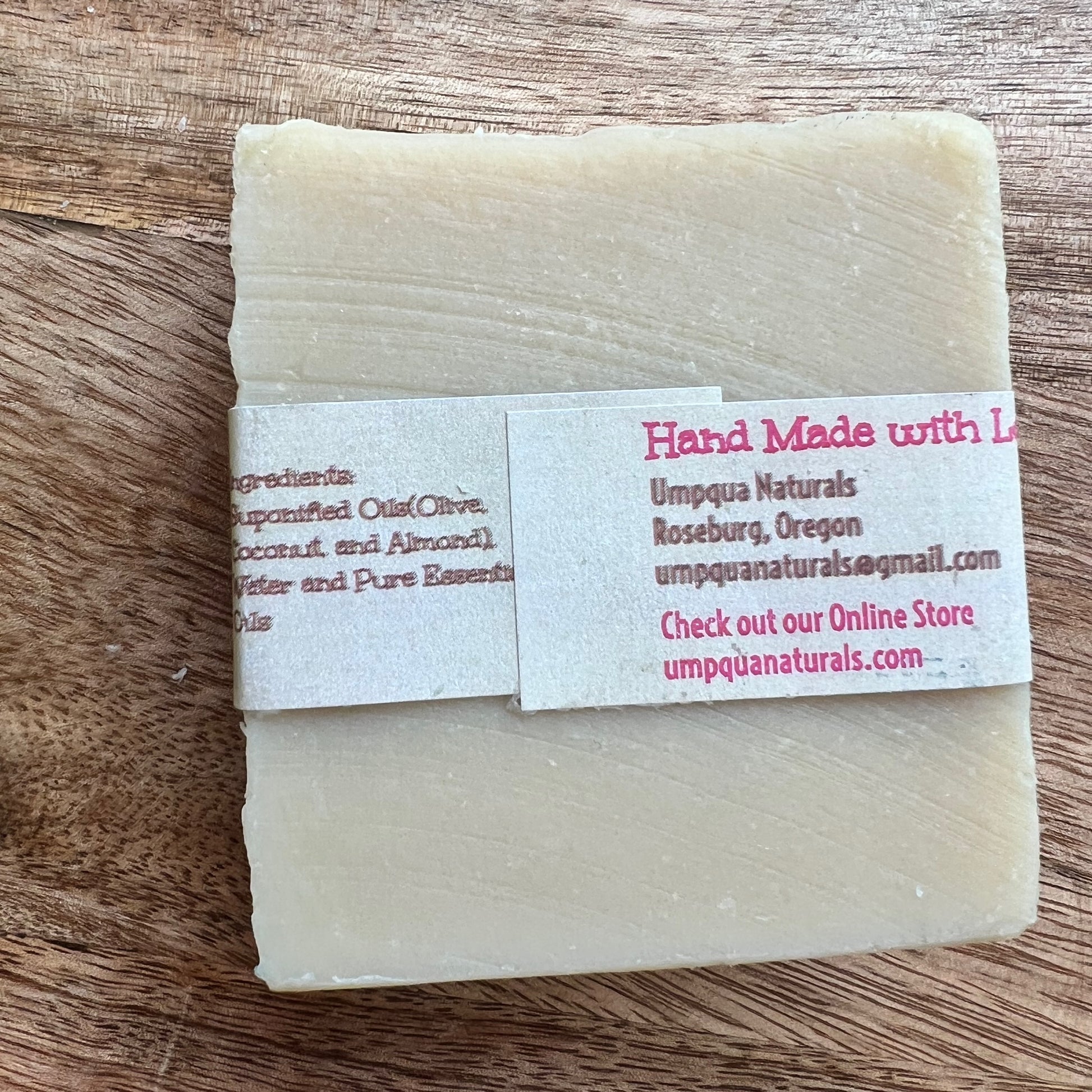 Each 4 oz bar is the perfect blend of Saponified Oils (Olive, Coconut, and Olive), Water, and Pure Essential Oils