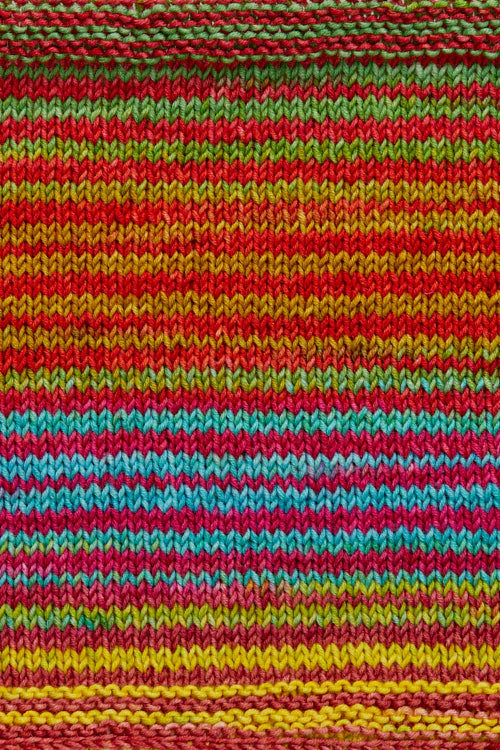 Urth Uneek DK is a short self-striping, hand dyed yarn.