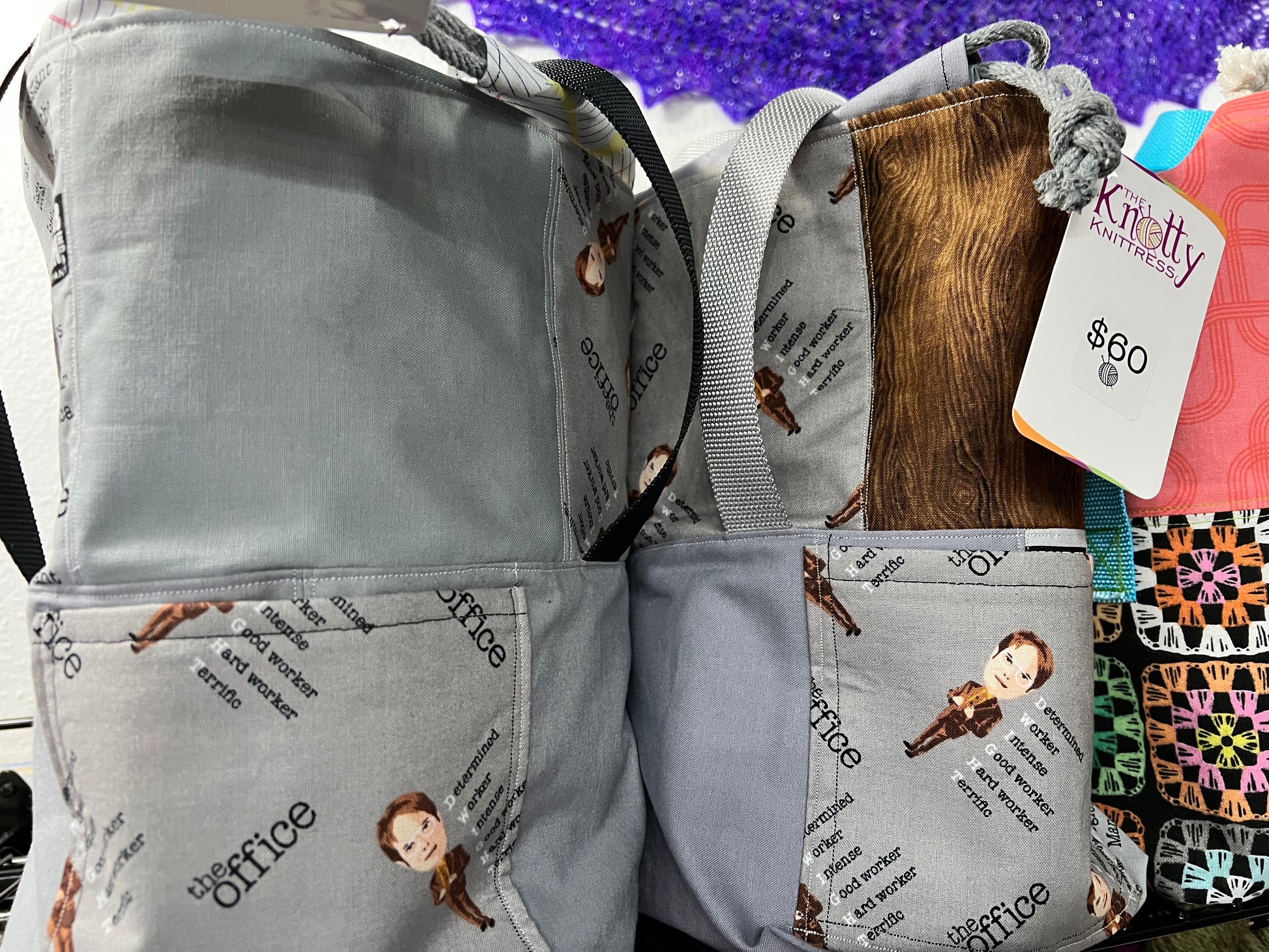 There are so many fun patterns to chose from, and I purchased a design that’s perfect for me! I love the separate compartments for colorwork yarns or to keep yarn away from other things in the bag. I’m so glad to have one!