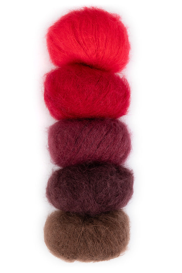 - Fiber: 74% Super Kid Mohair / 26% Silk