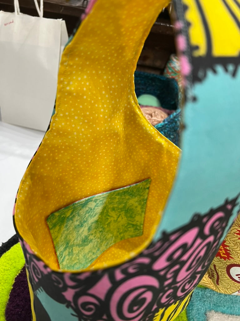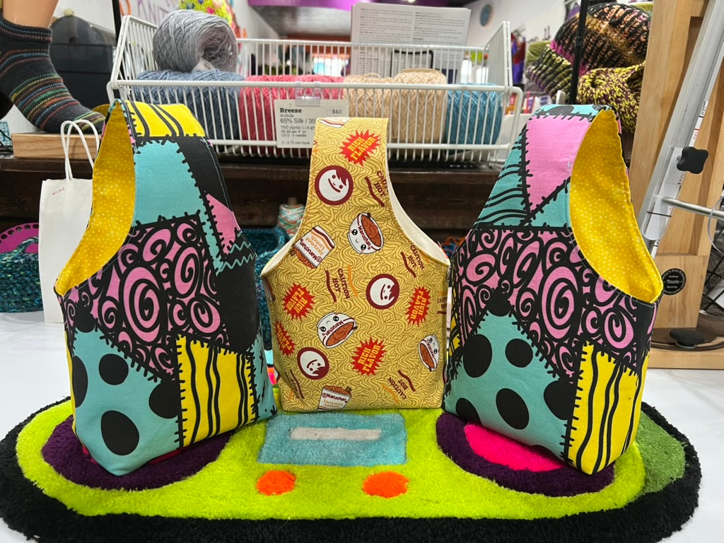 Carry your next stitching adventure with ease. This compact project bag holds a single skein and keeps your essentials organized with an interior pocket designed for stitch markers, tape measures, and other small notions. Handcrafted by the Knotty Knittress from fun prints 100% cotton with light interfacing, it's the ideal companion for crafting anywhere life takes you.