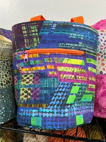 A fun bucket bag in two sizes Small and Regular with a flat base and zippered front pocket. Featuring handles, internal pockets, and snap closure will make this bag perfect for small yarn projects and crafting supplies, a lunch bag, toiletries, or as an everyday bag!