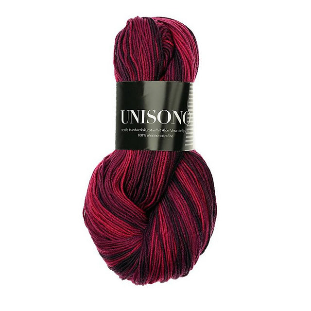 Unisono is a super soft extra-fine merino superwash yarn infused with aloe vera and jojoba oils. It has a lovely, springy twist that yields uniform, even stitches. Available in an array of variegated colorways and coordinating solids, great for any garment you can dream up - you won't want to stop wearing this yarn close to your skin.